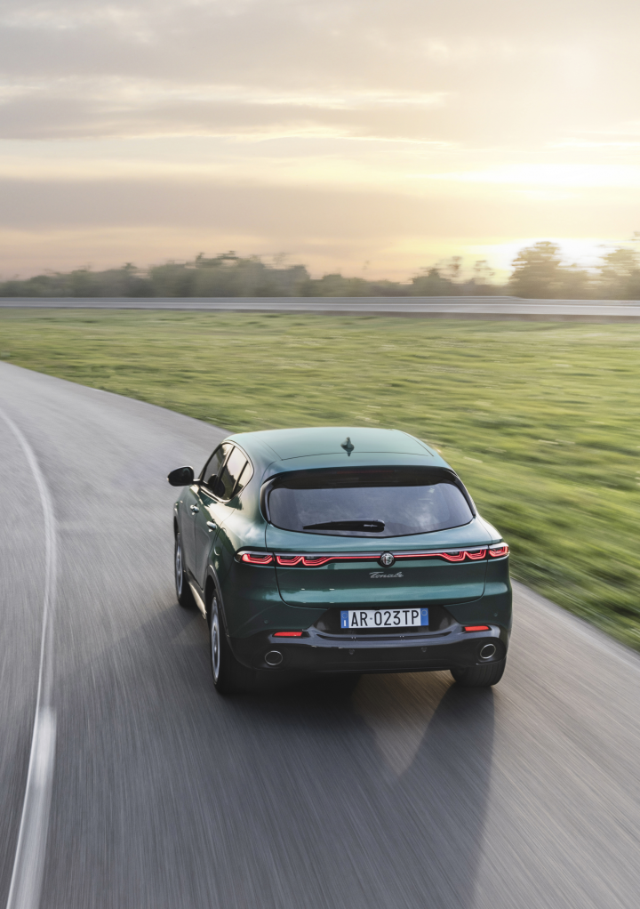 Η ποιότητα και η σημασία στη λεπτομέρεια συνδυάζονται ιδανικά με τα δυναμικά χαρακτηριστικά, ενώ η ενσωματωμένη τεχνολογία και οι διαθέσιμες υπηρεσίες συνδεσιμότητας, την καθιστούν ως την πιο ‘hi-tech’ Alfa Romeo που έχει κατασκευαστεί ποτέ. Το ιστορικό έμβλημα της Alfa Romeo έχει επανασχεδιαστεί ώστε να τονίζει τη διαδικασία εξηλεκτρισμού της μάρκας: το φιδάκι από το οικόσημο της μάρκας κοσμεί το πίσω αριστερό φινιστρίνι, ακριβώς πάνω από τη θύρα φόρτισης.