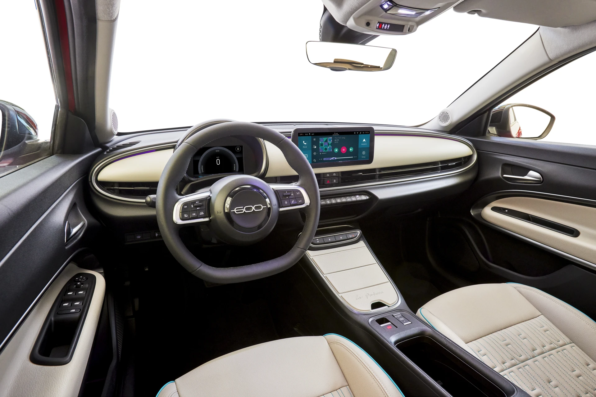 Όσον αφορά το εσωτερικό, την άνεση και τη συνδεσιμότητα, το νέο Fiat 600e διαθέτει πλήθος χαρακτηριστικών όπως hands free ηλεκτρικά ανοιγόμενη πόρτα χώρου αποσκευών, τέσσερα ηλεκτρικά παράθυρα, αυτόματο κλιματισμό, καθώς και αισθητήρες φωτός και βροχής. Επιπλέον έχει ηχοσύστημα με 6 ηχεία, πλήρως διαμορφώσιμη οθόνη 10.25” με λειτουργία πλοήγησης, ραδιόφωνο, ασύρματα CarPlay και Android Auto και ψηφιακό πίνακα οργάνων 7”.