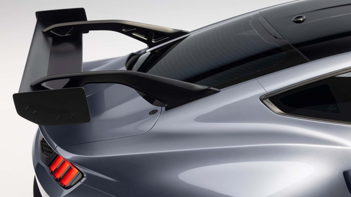 Τα φτερά, το καπό, το κάλυμμα που αντικαθιστά το πορτμπαγκάζ, τα μαρσπιέ των θυρών, το εμπρός splitter, ο πίσω διαχύτης και η οροφή είναι όλα κατασκευασμένα από ανθρακονήματα, ενώ προαιρετικά μπορούν να εγκατασταθούν πρόσθετα μέρη από carbon τόσο εμπρός όσο και πίσω. Επιπλέον, διαθέτει στοιχεία όπως τα υδραυλικά ελεγχόμενα εμπρός πτερύγια, τα οποία διαχειρίζονται τη ροή του αέρα σε συνεργασία με την ενεργή πίσω πτέρυγα με στόχο την ισορροπία σε επίπεδο αεροδυναμικής. Ο συνδυασμός των ειδικά σχεδιασμένων αεροδυναμικών χαρακτηριστικών αναμένεται να έχει ως αποτέλεσμα την ανάπτυξη μιας τεράστιας κάθετης αεροδυναμικής δύναμης, η οποία θα είναι κατανεμημένη τόσο στον εμπρός όσο και στον πίσω άξονα συμβάλλοντας στην αύξηση της ταχύτητας της Mustang GTD στις στροφές και παρέχοντας σταθερό έλεγχο και απίστευτους χρόνους σε μερικές από τις πιο απαιτητικές πίστες του κόσμου.