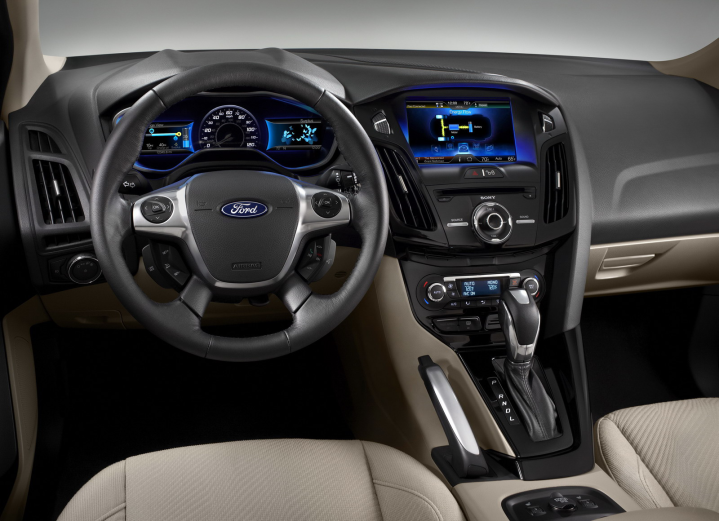 Ένα από τα καινούργια στοιχεία του ηλεκτρικού Focus είναι το σύστημα infotainment MyFord Touch. Πρόκειται για μια ευμεγέθη οθόνη αφής 4,2’’ που ενσωματώνει μια πλειάδα χρήσιμων λειτουργιών και ενδείξεων, όπως π.χ. για το ποσοστό φόρτισης των μπαταριών, την απόσταση από το κοντινότερο σημείο φόρτισης και τις οδηγίες (γραπτές και φωνητικές!) για οικονομική οδήγηση. Φυσικά, στην οθόνη προβάλλονται και πληροφορίες από τα υπόλοιπα υποσυστήματα, όπως το σύστημα πλοήγησης και ο υπολογιστής ταξιδίου.