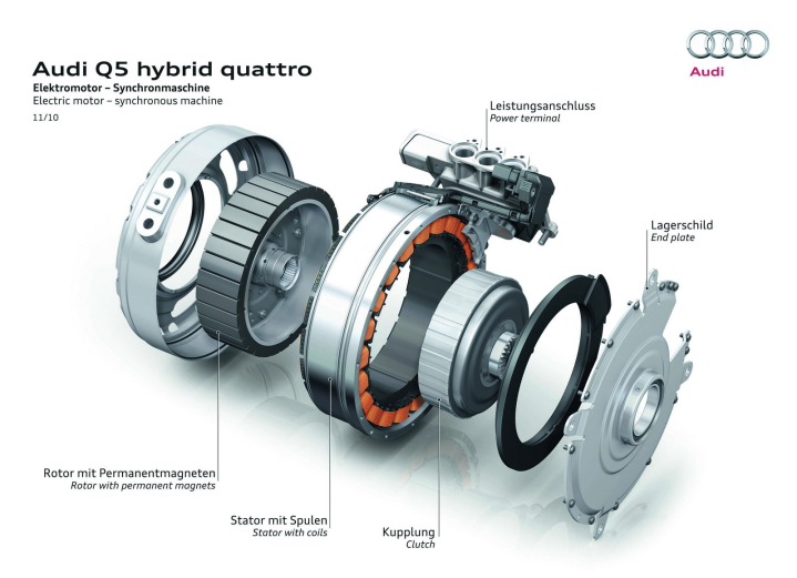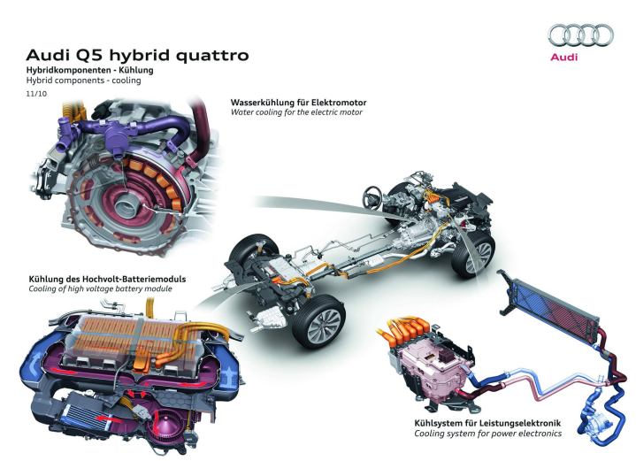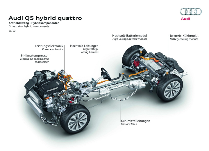 Τα επίσημα στοιχεία για το Q5 Hybrid (βλέπε προηγούμενες αναφορές εδώ και εδώ) αποκάλυψε η Audi στη Γενεύη. Το υβριδικό Q5 θα μπει στην παραγωγή στα τέλη του 2011 και είναι το πρώτο υβριδικό μαζικής παραγωγής της μάρκας με δύο συστήματα κίνησης. Το υβριδικό του σύστημα απαρτίζεται από τον 2λιτρο TFSI βενζινοκινητήρα των 211 PS και έναν ηλεκτροκινητήρα. Η συνολική ισχύς του συστήματος είναι 245 ίπποι και η ροπή 480 Nm, η μέση κατανάλωση μόλις 6,9 lt/100 km και οι εκπομπές CO2 159 g/km. Το Q5 Hybrid μπορεί να κινηθεί αποκλειστικά με τον ηλεκτροκινητήρα για 3 km και με ταχύτητα 60 km/h, ενώ η “ηλεκτρική” τελική του φτάνει τα 100 km/h. Η ηλεκτρική ενέργεια αποθηκεύεται σε μπαταρία ιόντων λιθίου. Όταν στο παιχνίδι μπαίνει και ο TFSI, η τελική ανεβαίνει στα 222 km/h και τα πρώτα 100 km/h από στάση έρχονται σε 7,1 sec. Η ισχύς φτάνει και στους 4 τροχούς μέσω του συστήματος μόνιμης τετρακίνησης quattro και ενός αυτόματου κιβωτίου 8 σχέσεων.