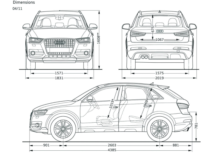 Πολυτελές SUV σε κόμπακτ σχήμα, χαρακτηρίζει η Audi το νέο της μοντέλο που έρχεται να αντιπαρατεθεί στην BMW X1. Από την πρώτη ματιά είναι προφανές πως η σχεδίαση είναι κλασική Audi, σαν ένα Q5 ή Q7 σε σμίκρυνση. Οι διαστάσεις του Q3 είναι 4,39 x 1,83 x 1,60 m (Μ x Π x Υ). Όσον αφορά τα μηχανικά μέρη, θα υπάρχει μια επιλογή από τέσσερις 2λιτρους τετρακύλινδρους κινητήρες, δύο βενζίνης TFSI με ισχύ 211 και 170 ίππους, και δύο diesel TDI με 177 και 140 ίππους. Ο ισχυρότερος κινητήρας της γκάμας, ο TFSI των 211 ίππων, έχει επιτάχυνση 0-100 km/h σε 6,9 sec και τελική ταχύτητα 230 km/h. Στο λανσάρισμα θα είναι διαθέσιμοι οι τρεις πρώτοι, ενώ ο πιο οικονομικός TDI 140 PS (μέση κατανάλωση 5,2 lt/100 km) θα ακολουθήσει το 2012 και θα είναι ο μοναδικός που θα συνδυάζεται με κίνηση αποκλειστικά στους εμπρός τροχούς. Όλες οι υπόλοιπες εκδόσεις θα είναι 4x4 με σύστημα τετρακίνησης quattro υδραυλικού πολύδισκου κεντρικού συμπλέκτη. Από πλευράς κιβωτίων, ένα χειροκίνητο 6άρι θα υπάρχει στα Q3 2.0 TFSI 170 PS και 2.0 TDI 140 PS, ενώ στα ισχυρότερα 2.0 TFSI 211 PS και 2.0 TDI 177 PS θα διατίθεται ένα 7άρι S tronic διπλού συμπλέκτη.