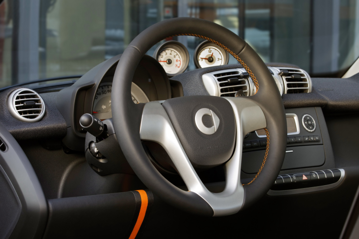 Το εσωτερικό υιοθετεί την ίδια χρωματική ιδέα με αυτήν του αμαξώματος όπου τα μαύρα καθίσματα συνδυάζονται με δέρμα και ύφασμα με μία σπορτίφ πορτοκαλί λωρίδα στη μέση. Τα εξαρτήματα, όπως τα διακοσμητικά των οργάνων, είναι βαμμένα σε φωτεινό μαύρο. Το τριάκτινο σπορ τιμόνι με τον επιλογέα ταχυτήτων είναι καλυμμένα με μαύρο δέρμα νάπα. Το βασικό ηχοσύστημα (ραδιόφωνο RDS με διασυνδέσεις AUX / USB και δύο ηχεία) διατίθεται στον στάνταρ εξοπλισμό του smart fortwo nightorange, όπως και τα όργανα στο ταμπλό (ρολόι και στροφόμετρο).