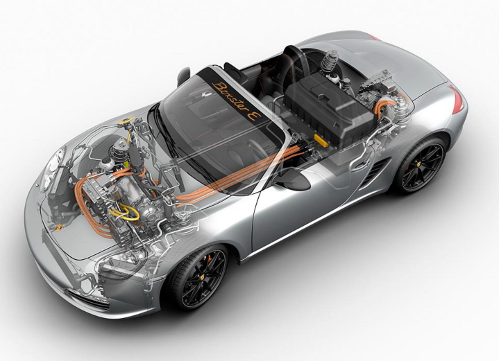 Στον ετήσιο διαγωνισμό Michelin Challenge Bibendum που έγινε στο Βερολίνο, η Porsche συμμετείχε με τα ηλεκτρικά πρωτότυπα Boxster E. Η γερμανική εταιρεία δοκιμάζει ήδη τις ηλεκτρικές Boxster τόσο σε πισωκίνητη όσο και σε τετρακίνητη εκδοχή. Και στις δύο περιπτώσεις υπάρχει ένας ηλεκτροκινητήρας τοποθετημένος στο κέντρο – πίσω από τα καθίσματα, στη θέση του βενζινοκινητήρα – ο οποίος κινεί τους πίσω τροχούς. Η διαφορά της τετρακίνητης από την πισωκίνητη έκδοση είναι η προσθήκη ενός ακόμη ηλεκτροκινητήρα κάτω από το εμπρός καπό, στη θέση του ρεζερβουάρ βενζίνης, ο οποίος κινεί τους εμπρός τροχούς. Μια κεντρική μονάδα ελέγχου φροντίζει για την συνεργασία των δύο ηλεκτροκινητήρων και την ιδανική κατανομή ροπής στους εμπρός και πίσω τροχούς.