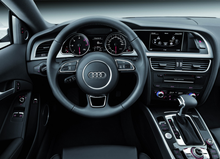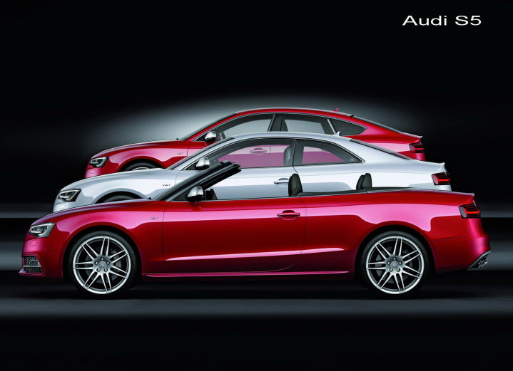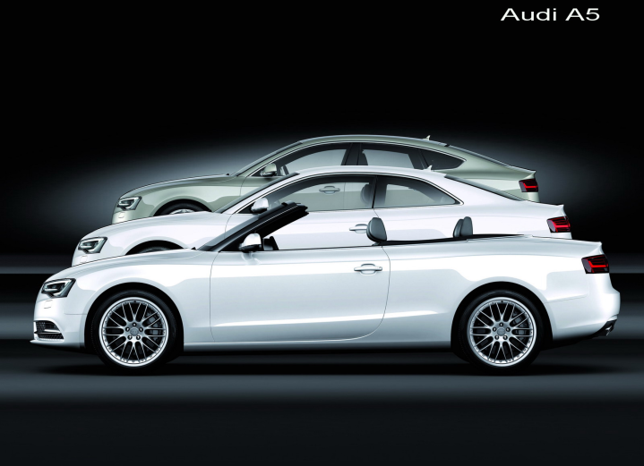 Όλοι οι κινητήρες εφοδιάζονται με συστήματα start&stop και ανάκτησης ενέργειας. Αρχίζοντας από τον βασικό, τον ριζικά ανασχεδιασμένο 1.8 TFSI, η ισχύς του ανέρχεται πια στους 170 ίππους (από 160), η μέση κατανάλωση δεν ξεπερνά τα 5,7 lt/100 km και οι εκπομπές CO2 είναι 134 g/km. Ο 2λιτρος TFSI των 211 ίππων παραμένει ως έχει, ενώ νέος είναι ο 3λιτρος V6 Turbo FSI των 272 ίππων. Σε diesel, υπάρχει ο τετρακύλινδρος 2.0 TDI με ισχύ 177 ίππων, μέση κατανάλωση 4,7 lt/100 km και εκπομπές CO2 122 g/km, καθώς και ο εξακύλινδρος 3.0 TDI σε εκδόσεις των 204 και 245 ίππων. Όπως ανακοίνωσε η Audi, μελλοντικά θα υπάρξει ένας ακόμη πετρελαιοκινητήρας που θα καλύπτει τις προδιαγραφές ρύπων Euro 6. Στα S5, ο νέος 3.0 V6 TFSI των 333 ίππων αντικατέστησε τον ατμοσφαιρικό 4.2 V8 των 354 ίππων, προσφέροντας 20% χαμηλότερη μέση κατανάλωση (8,1 lt/100 km) και ελαφρώς καλύτερες επιδόσεις, παρά την μικρότερη ισχύ.