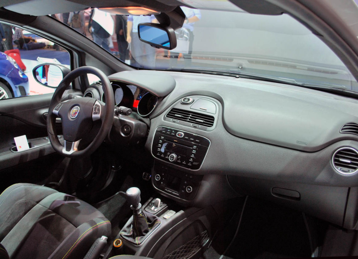 Στο εσωτερικό ξεχωρίζουν τα μαύρα δερμάτινα καθίσματα “Abarth Corsa by Sabelt” με κόκκινες/κίτρινες ραφές και γυαλιστερή μαύρη πλάτη, το δορυφορικό σύστημα πλοήγησης Abarth Blue&MeTM MAP με λειτουργία τηλεμετρίας που εξελίχθηκε σε συνεργασία με την Magneti Marelli, τα αλουμινένια μαρσπιέ με γραφικά “SuperSport”, τα ανοξείδωτα πεντάλ με το λογότυπο Abarth, το δερμάτινο τιμόνι με διπλή κόκκινη/κίτρινη ραφή και τα σπορ όργανα της Jaeger.