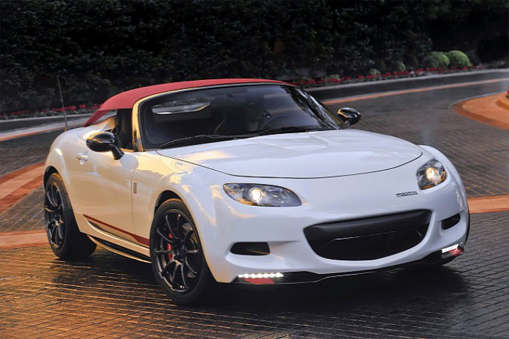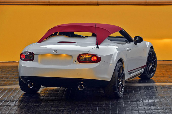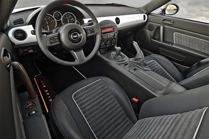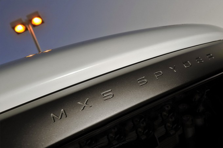 Η έκθεση SEMA που γίνεται κάθε χρόνο στο Las Vegas συγκεντρώνει όλα τα φώτα της δημοσιότητας για τον κόσμο της βελτίωσης και όχι μόνο. Κάποιοι κατασκευαστές αξιοποιούν την τεράστια επισκεψιμότητα της έκθεσης για να δείξουν μοντέλα που ταιριάζουν στο προφίλ του κοινού που την παρακολουθεί. H νέα έκδοση Mazda MX-5 Spyder αποτελεί απόδειξη αυτής της πρακτικής. Το μονοκόμματο soft top του MX-5 Spyder δημιουργεί μια τελείως διαφορετική εμφάνιση, πιο σπορ, που δένει αρμονικά με τη χρωμέ φάσα στο περίγραμμα του παρμπρίζ. Για την στήριξη της κουκούλας, υπάρχουν δύο προεκτάσεις οι οποίες βγαίνουν από το χώρο του πορτμπαγκάζ, δίνοντας ρετρό πόντους στο συνολικό αποτέλεσμα.