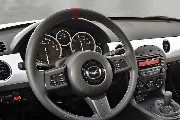 Στην καμπίνα υπάρχουν παρεμβάσεις κυρίως για να τονιστεί ο ιδιαίτερος χαρακτήρας του μοντέλου και το μαύρο δερμάτινο σαλόνι διαθέτει λευκά τελειώματα στις ραφές και σουέτ τμήματα στα καθίσματα. Επιπλέον έχει τοποθετηθεί ο επιλογέας με τις μικρότερες διαδρομές της Mazdaspeed.