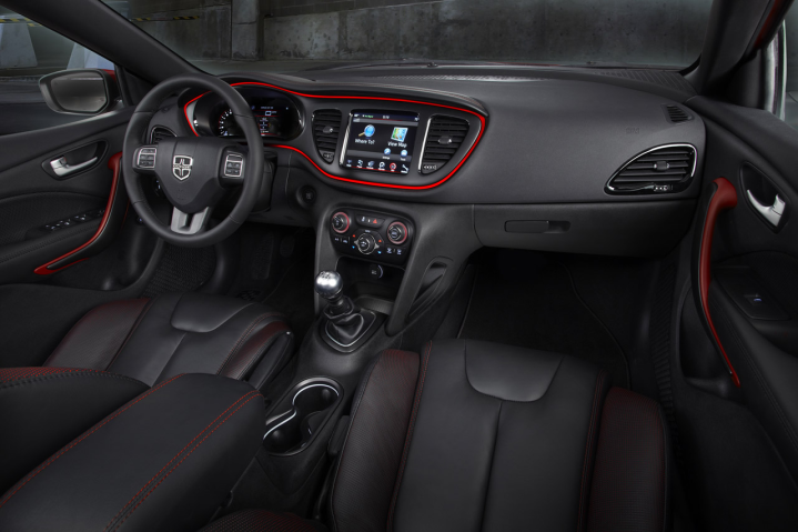 Μοντέρνας σχεδίασης είναι το εσωτερικό του Dart. Στο κέντρο του ταμπλό θα βρίσκεται η οθόνη 8,4 ιντσών του Chrysler Group UConnect multimedia πακέτου, απαραίτητου πλέον για ένα σύγχρονο sedan σαν το Dart. Παράλληλα, σύγχρονα στοιχεία ενεργητικής ασφάλειας (π.χ σύστημα ελέγχου τυφλών γωνιών) και 10 αερόσακοι θεωρούνται δεδομένα για το Dart. Οι χώροι θα είναι από τα βασικά προσόντα του Dart σύμφωνα με τις πρώτες ανακοινώσεις της Dodge. Συνολικά 12 χρώματα για το αμάξωμα και 14 χρωματικές επιλογές στο εσωτερικό, μαζί με 6 διαφορετικές επιλογές σε ζάντες, θα δίνουν το προσωπικό τόνο του εκάστοτε αγοραστή στο νέο Dart.