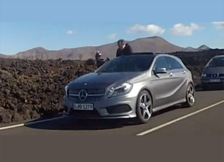 Μπορεί η Mercedes-Benz να δημιούργησε ένα video-teaser με καμουφλαρισμένη την ολοκαίνουργια A-Class για τον σχετικό διαγωνισμό "QR-Trophy", ενόψει της παγκόσμιας πρεμιέρας στη Γενεύη, ωστόσο ένα μοτοσικλετιστής έπιασε επ’ αυτοφώρω και εντελώς "γυμνή" τη μικρή Mercedes κατά τη διάρκεια δοκιμών στην Ισπανία και την κατέγραψε με την κάμερά του. Μπορεί στο official video η καμουφλαρισμένη A-Class να δείχνει “προσγειωμένη” αισθητικά, αλλά απ’ ότι φαίνεται στο δεύτερο video, οι Γερμανοί διατήρησαν τη δυναμική εμφάνιση του πρωτοτύπου στην έκδοση παραγωγής. Δείτε παρακάτω και τα δύο video.