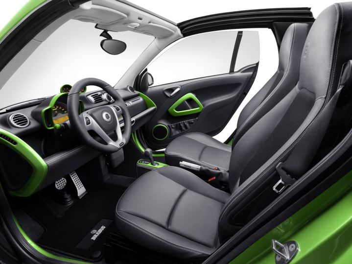 Η Brabus παρουσίασε τα σχέδια της για το ηλεκτρικό ForTwo στο σαλόνι της Γενεύης. Με αισθητικές αλλαγές, μαύρο χρώμα και χαρακτηριστική πράσινη απόχρωση για τον κλωβό tridion, το ηλεκτρικό Brabus Smart δείχνει αναμφίβολα πιο επιθετικό στο μάτι. Μικρές αλλαγές έχει και το εσωτερικό, το οποίο έχει στολιστεί με τον ανάλογο σπορ διάκοσμο στον πίνακα οργάνων, στα καθίσματα, στις χειρολαβές και τα πεντάλ.