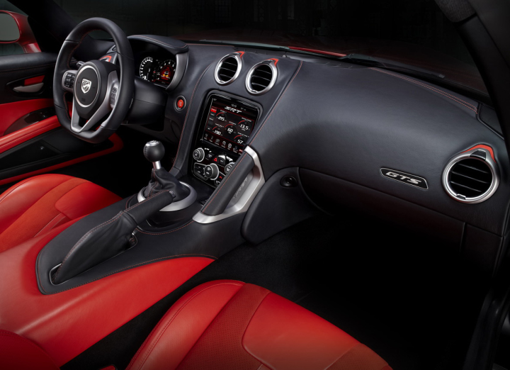 Άπειρα κυβικά, καμιά δεκαριά κύλινδροι, πληθωρική δύναμη και ροπή ικανή να ξετινάξει τα λινά των πίσω ελαστικών σε χρόνο dt: Αυτή ήταν η συνταγή για τις δύο προηγούμενες γενιές του Viper, αυτή συνεχίζει να είναι και στο καινούργιο μοντέλο. Η σχεδίαση δεν ξεφεύγει από τις γραμμές του παρελθόντος, ενώ ο V10 των 8,4 λίτρων αποδίδει 640 ίππους και 815 Nm ροπής χωρίς χρήση τούρμπο ή κομπρέσσορα – ατμοσφαιρικότατα! Πρόκειται για την υψηλότερη ροπή που αποδίδει ατμοσφαιρικός κινητήρας αυτοκινήτου στον κόσμο. Δεν είναι μόνο η δύναμη όμως. Οι αλλαγές στο πλαίσιο έχουν αυξήσει τη στιβαρότητα κατά 50%, το βάρος έχει μειωθεί σημαντικά, η αναλογία κιλών ανά ίππο πλησιάζει αυτή των Bugatti Veyron και Ferrari F12, τα τεράστια P Zero φάρδους 355 πίσω και 295 μπροστά έχουν σχεδιαστεί από την Pirelli ειδικά για το Viper, τετραπίστονες δαγκάνες και δίσκοι της Brembo έχουν αναλάβει το φρενάρισμα, ενώ για πρώτη φορά υπάρχουν συστήματα ελέγχου της πρόσφυσης και της ευστάθειας – μην ανησυχείτε, απενεργοποιούνται, όπως μας καθησύχασαν από την SRT. Α, ναι, το άλλο το ξεχάσαμε: τα σήματα της Dodge, γιοκ. Το νέο Viper ακούει στο όνομα SRT (Street and Racing Technology), η οποία είναι για την Chrysler ότι το M division για τη BMW. Η κλασική συνταγή Viper άλλαξε στο εσωτερικό, όπου η ποιότητα και η πολυτέλεια αναβαθμίστηκαν σημαντικά. Εκτός από τα καθίσματα της Sabelt, έχουμε έγχρωμη οθόνη LCD 7’’ στον πίνακα οργάνων, άλλη μία 8,4’’ στην κεντρική κονσόλα με το σύστημα πολυμέσων Uconnect της Chrysler, ηχοσύστημα by Harmon Kardon και… για πρώτη φορά, cruise control. Πως είπατε; Ιεροσυλία;