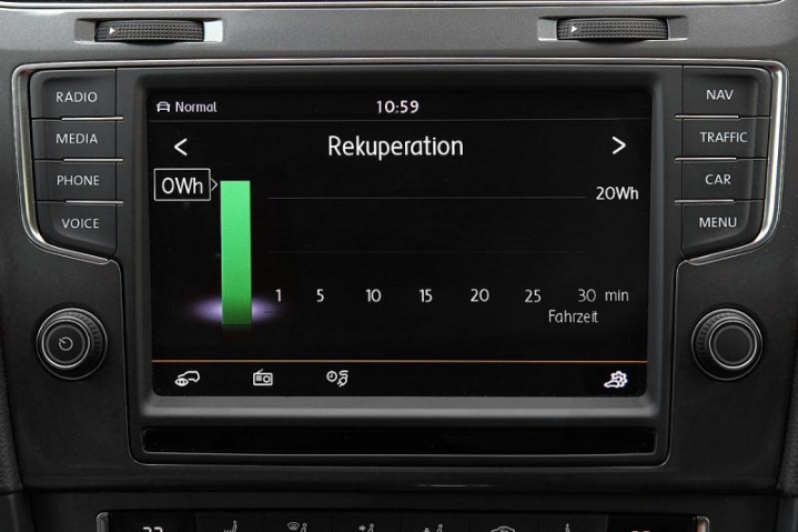 Με χωρητικότητα 26,5kWh οι μπαταρίες χαρίζουν αυτονομία 175 χιλιομέτρων και χρειάζονται πέντε ώρες φόρτιση από μία κοινή οικιακή παροχή. Ανάλογα τον τρόπο οδήγησης και τις ανάγκες των επιβατών υπάρχουν τρία διαθέσιμα modes, Normal, Eco και Range. Στη θέση Normal η λειτουργία του συστήματος ηλεκτροκίνησης γίνεται χωρίς περιορισμούς. Στη θέση ECO ο κινητήρας αποδίδει 95 ίππους, η τελική περιορίζεται στα 120km/h και το σύνολο είναι λιγότερο ενεργοβόρο. Τη μέγιστη ακτίνα δράσης το e-Golf την επιτυγχάνει στη θέση Range όπου απενεργοποιείται ο κλιματισμός που καταναλώνει μεγάλα ποσά ενέργειας και η τελική μειώνεται στα 95km/h.