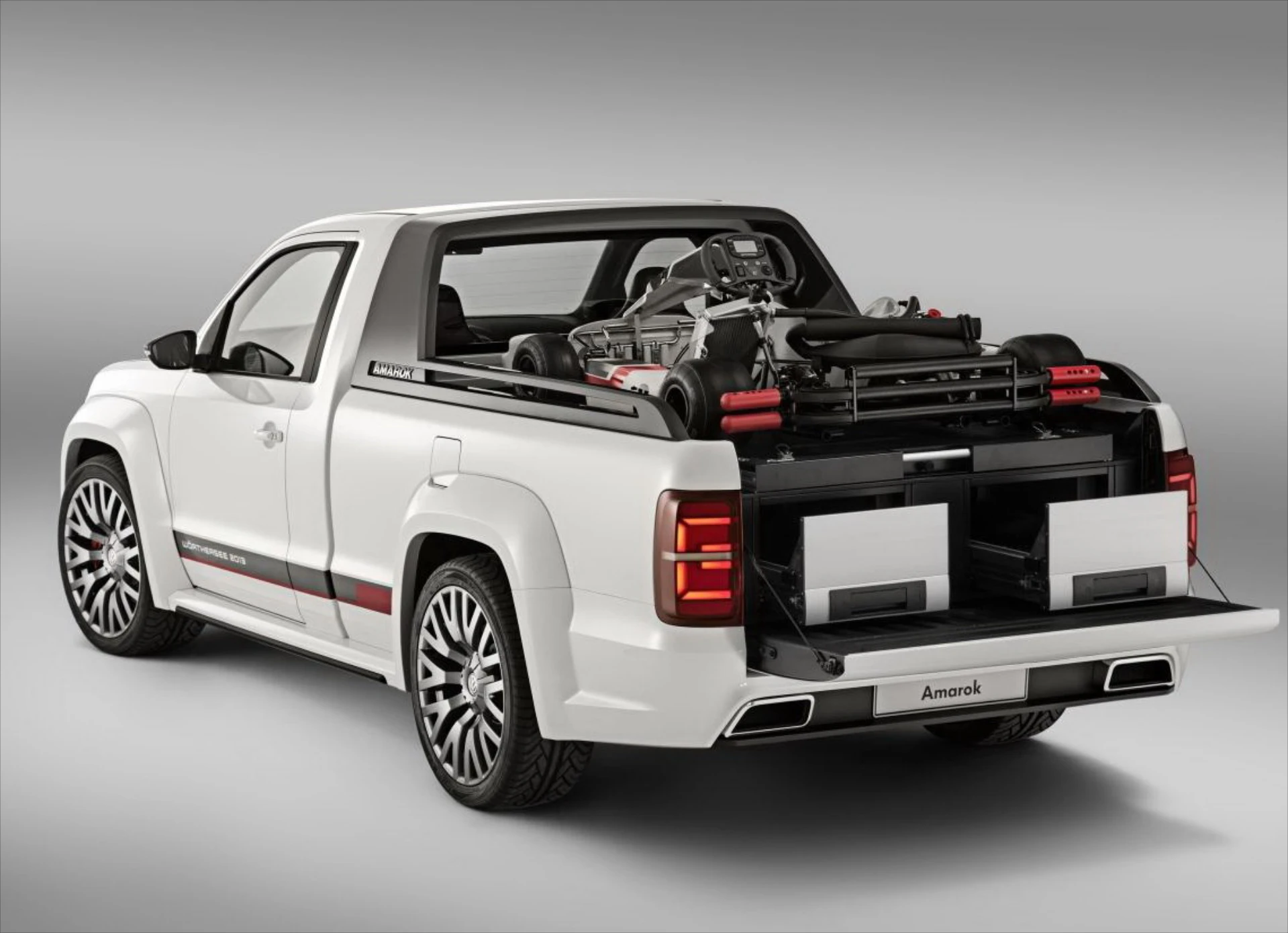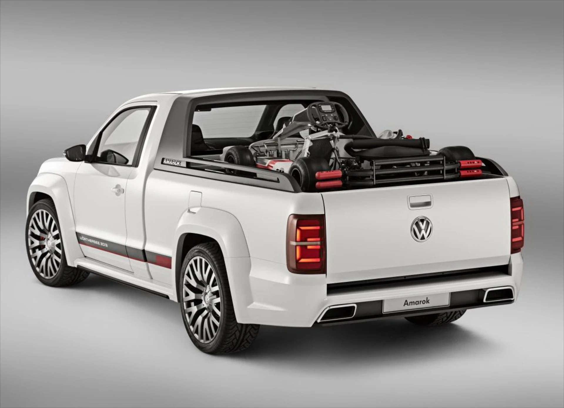 Ένα ξεχωριστό προτώτυπο παρουσίασε η Volkswagen στην έκθεση Wörthersee Tour. To Power – Pickup Concept βασίζεται στο μονοκάμπινο Amarok και αποτελεί μια εκδοχή ενός κινητού συνεργείου, για μεταφορά εργαλείων, ανταλλακτικών και αγωνιστικού εξοπλισμού. Εμφανισιακά το επαγγελματικό σχήμα του Amarok έχει βρει την απόλυτη σπορ έκφανση, στηριζόμενο, στην χαμηλωμένη ανάρτηση κατά 80 mm, στα αεροδυναμικά βοηθήματα, τις λεπτομέρειες από χρώμιο, τα φώτα bi-xenon και τους τροχούς των 22 ιντσών. Παράλληλα ένα ηχοσύστημα, με subwoofer 500-watt φροντίζει να συμπληρώσει την tuning εικόνα.