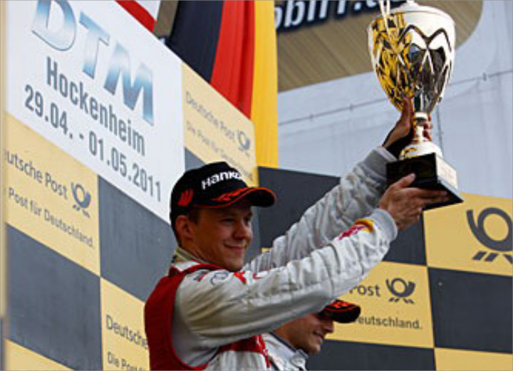 Ο Bruno Spengler άνοιξε με pole position και νίκη τη φετινή σεζόν στο Γερμανικό Πρωτάθλημα Τουρισμού. Στον πρώτο αγώνα του DTM για το 2011, που έγινε στο Hockenheim, ο οδηγός της Mercedes-Benz οδήγησε την κούρσα από την αρχή μέχρι το τέλος, μην αφήνοντας ελπίδες για νίκη στους Mattias Ekstrom (Audi), Ralf Schumacher (Mercedes-Benz) και Timo Scheider (Audi) που τον ακολούθησαν στην τελική κατάταξη. Η αγωνία κορυφώθηκε στον τελευταίο γύρο, καθώς αρχικά ο Schumacher είχε μάχη με τον Scheider, ενώ στις τελευταίες δύο στροφές ο Ekstrom αντιμετώπισε πρόβλημα στο Audi A4 του, τερματίζοντας τελικά μόλις 1,87 δέκατα του δευτερολέπτου μπροστά από την C-Class AMG του Schumacher. Αυτό ήταν τον παρθενικό podium του Ralf Schumacher, ύστερα από 33 αγώνες του Γερμανού στο θεσμό. Το DTM θα μεταφερθεί εκτός Γερμανίας για τον επόμενο αγώνα που θα γίνει στο Zandvoort της Ολανδίας στις 15 Μαΐου.