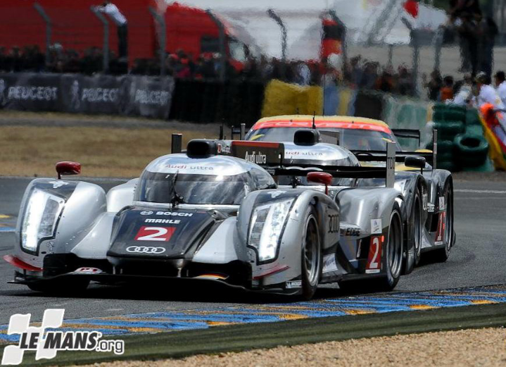 Το μοναδικό Audi R18 TDI που τερμάτισε τον αγώνα ήταν αυτό που πήρε και τη νίκη. Οι Benoit Treluyer, Andre Lotterer και Marcel Fassler άντεξαν τελικά στην ασφυκτική πίεση του Peugeot 908 των Simon Pagenaud, Sebastien Bourdais και Pedro Lamy που υπερείχαν σε ταχύτητα στην ευθεία και σε οικονομία καυσίμου κάνοντας έτσι λιγότερες στάσεις για ανεφοδιασμό. Η γαλλική ομάδα είδε τελικά το 908 Νο 9 να τερματίζει στη 2η θέση, 13,854 sec μόλις πίσω από το Audi των νικητών. Σημειώστε πως αυτή είναι η 4η μικρότερη διαφορά του νικητή από τον δεύτερο στην ιστορία του αγώνα. Τρίτο τερμάτισε ένα ακόμη Peugeot, αυτό των Minassian, Sarrazin και Montagny.