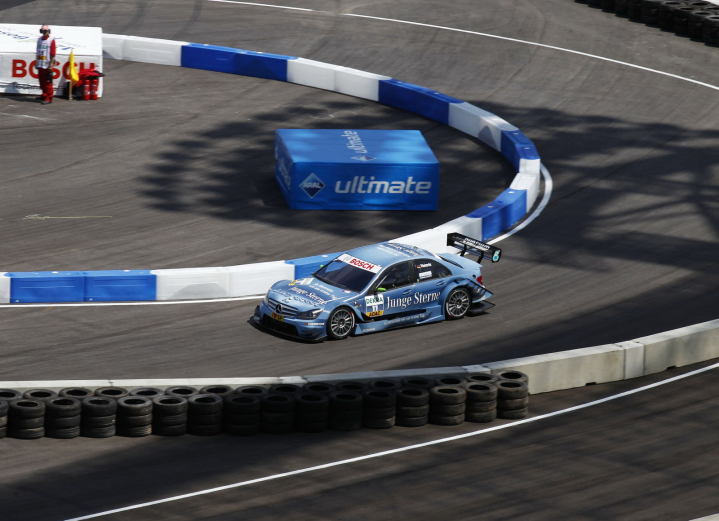 Στο Olympiastadion του Μονάχου και μπροστά σε 54.000 θεατές, οι 18 οδηγοί του Γερμανικού Πρωταθλήματος Τουρισμού αγωνίστηκαν ένας-προς-έναν σε μια παράλληλη διαδρομή μήκους σχεδόν 2 km, με τους νικητές κάθε γύρου να περνούν στον επόμενο. Νικητής της πρώτης μέρας (Σάββατο 16 Ιουλίου), όπου έγινε η μάχη κατά μάρκα, ήταν ο rookie του θεσμού, Edoardo Mortara (Audi). Ο Ιταλός, αφού ξεχώρισε από τους οδηγούς της Audi, έχασε τον πρώτο τελικό από τον νικητή των Mercedes, Bruno Spengler (Mercedes-Benz) με διαφορά μόλις ένα εκατοστό του δευτερολέπτου. Kέρδισε όμως τον δεύτερο αγώνα τερματίζοντας με το Team Rosberg Audi A4 προηγούμενων προδαγραφών 0,3 sec μπροστά από τον Spengler. Την Κυριακή όμως η τύχη χαμογέλασε στον οδηγό της HWA Mercedes. Ο Spengler κέρδισε στον πρώτο αγώνα, ενώ στο δεύτερο ο Mortara είχε έξοδο σερβίροντας την τελική νίκη στο πιάτο του Spengler, ο οποίος δήλωσε: “Είναι μοναδικό το συναίσθημα του να κερδίζεις στο πρώτο DTM Show στο Ολυμπιακό Στάδιο του Μονάχου”. Δείτε εδώ τα αποτελέσματα της Κυριακής. Στη βαθμολογία συνεχίζει να προηγείται ο Spengler, μόλις 3 βαθμούς εμπρός από τον Tomczyk. Ο έκτος γύρος του πρωταθλήματος θα γίνει στο Nürburgring, 5-7 Αυγούστου.