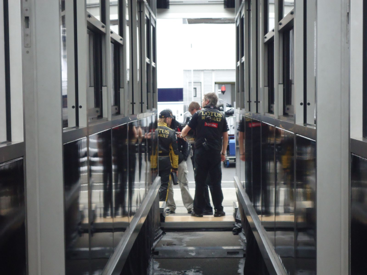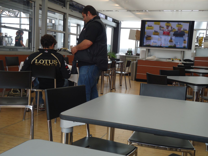 Όταν πέρασα από την άλλη μεριά είχαν αρχίσει να διαλύουν τα σημεία ηλεκτρονικού ελέγχου για τα paddock. Όπως είχαν αρχίσει σιγά σιγά οι ομάδες να μαζεύουν τα πράγματά τους. Πρέπει να ξέρετε ότι τα paddock διαλύονται κατά την διάρκεια του αγώνα και κάποιες ώρες μετά από το τέλος αυτού κάποια φορτηγά είναι έτοιμα προς αναχώρηση. Μπήκα στο motorhome της Lotus Renault GP όπου ήταν ο Bruno Senna με κάποιο μέλος της ομάδας και παρακολουθούσαν τον αγώνα. Ο Bruno είναι ένας απίστευτος άνθρωπος. Πάντα πρόσχαρος και διαθέσιμος για κουβέντα. Μετά από λίγο πήρε φωτιά το μονοθέσιο του Heidfeld, αλλά μόλις ήρθε στο motorhome φαινόταν χαλαρός, έχοντας περάσει από την «ιερά εξέταση» των δημοσιογράφων. Φωτιά παίρνει μόνο «κυριολεκτικά» και όχι μεταφορικά με τις εμφανίσεις του να είναι απογοητευτικές.