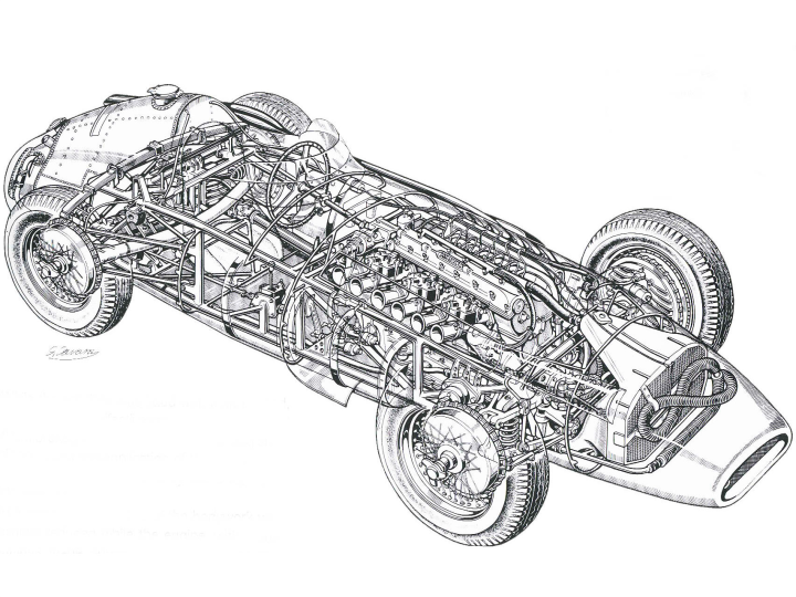 Βασικός συντελεστής στη σχεδίαση του αυτοκινήτου ήταν ο Cioacchino Colombo, άρτι αφιχθείς από την Alfa Romeo στις αρχές του 1953, με δάφνες για το διαμάντι των 1,5 λίτρων και των δώδεκα κυλίνδρων (σε σχήμα V) που είχε σχεδιάσει για την Ferrari. Και μπορεί να αποχώρησε στο τέλος του 1954, αλλά όχι πριν βάλει το χέρι του στον κινητήρα.