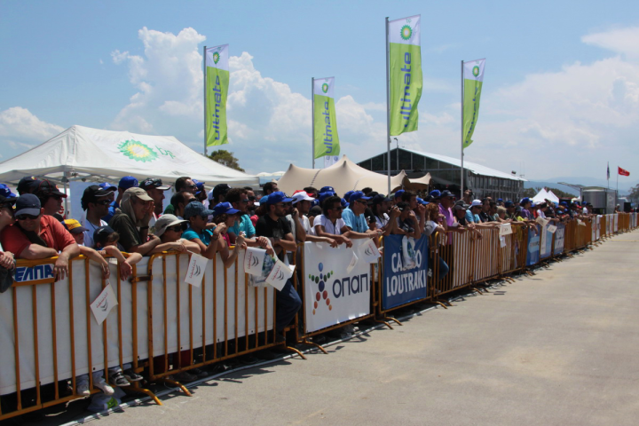πρώτο πλήρωμα να ανεβαίνει στην ράμπα του τερματισμού στο Λουτράκι