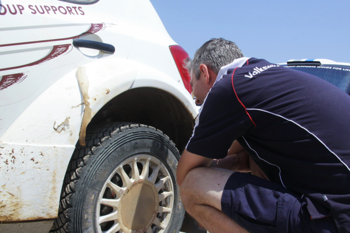 όσο και με μια στραβωμένη ζάντα, εξαιτίας χτυπήματος σε πέτρα.