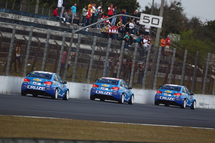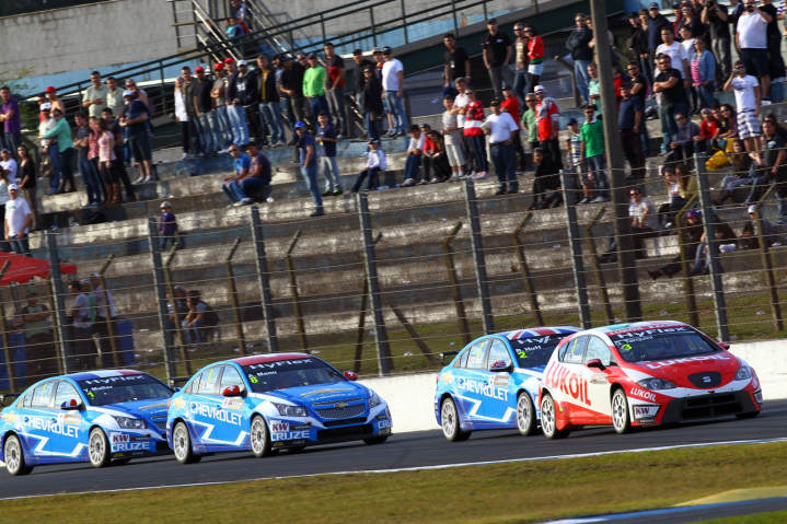 Κυριάρχησαν τα Chevrolet στον πρώτο γύρο του αγώνα στην Βραζιλία. Οι τρεις πρώτες θέσεις κατελήφθησαν από τα Cruze με τον Yvan Muller να ενισχύει το προβάδισμα του στο πρωτάθλημα, καταλαμβάνοντας την πρώτη θέση στον αγώνα, πετυχαίνοντας παράλληλα την 6η φετινή του νίκη. Δεύτερη και τρίτη θέση για τους Alain Menu και Rob Huff που συμπλήρωσαν την επικράτηση των Chevrolet. Τέταρτη θέση για τον Tarquini -του χρόνου θα τρέχει με Honda- ο οποίος κατάφερε να κρατήσει με το Seat Leon, άλλα δυο Cruze ιδιωτικής συμμετοχής πίσω του στην τελική κατάταξη του πρώτου αγώνα.