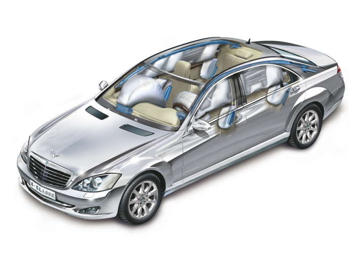 Στην Γερμανία, η Mercedes ασχολιόταν από το 1967, με την εξέλιξη της ιδέας του αερόσακου. Οι Γερμανοί, έκαναν πολλές δοκιμές που αποδείκνυαν την αξία ενός τέτοιου συστήματος στην ασφάλεια των αυτοκινήτων, μαζεύοντας στοιχεία, με στόχο την βελτιστοποίηση του. Από τον εφευρέτη της έκφρασης «παθητική ασφάλεια» Béla Barényi, ξεκίνησαν πολλές καινοτόμες τεχνολογικές εξελίξεις, συστημάτων ασφαλείας, τα οποία χαρακτήριζαν τις παλαιότερες σειρές της Mercedes της εποχής εκείνης.