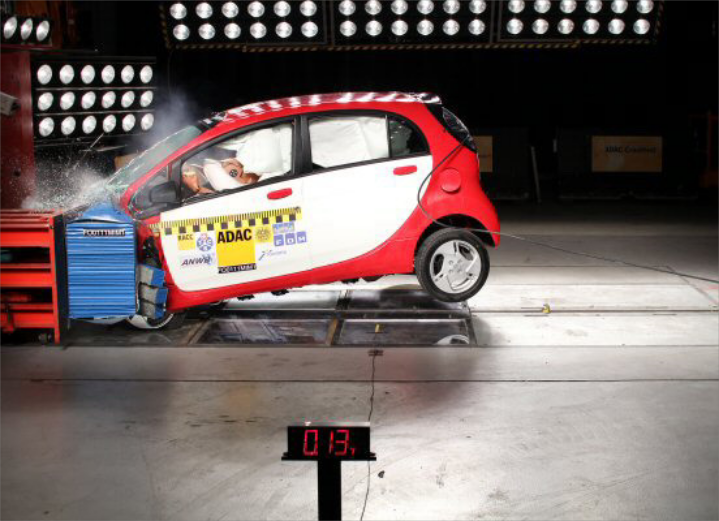 Περίφημα τα πήγε το Mitsubishi i-MiEV στις δοκιμές πρόσκρουσης που πραγματοποίησε η Γερμανική Λέσχη Αυτοκινήτου ADAC. Το i-MiEV είναι το πρώτο ηλεκτρικό αυτοκίνητο μαζικής παραγωγής που κυκλοφορεί στη Γερμανία. Κατά τη διάρκεια του crash test, το i-MiEV αναγνώρισε άμεσα τη σύγκρουση και έκλεισε αυτόματα τα ηλεκτρικά συστήματα υψηλής τάσης, διατηρώντας ανέπαφο το χώρο επιβατών, ενώ καμία ζημιά δεν αναφέρθηκε στις 88 κυψέλες της μπαταρίας ιόντων λιθίου. Η δοκιμή περιλάμβανε δύο συγκρούσεις, μία πλαγιομετωπική με ταχύτητα 64 km/h, έκκεντρη κατά 40% και μία οπίσθια σε κινούμενη μπαριέρα 1.400 kg με ταχύτητα 80 km/h και έκκεντρη κατά 70%. Εκπρόσωπος της ADAC σχολίασε μεταξύ άλλων πως “… το i-MiEV, αν και ελαφρύ, συμπαγές και με σύστημα EV υψηλής τάσης, είναι το ίδιο ασφαλές με οποιοδήποτε άλλο βενζινοκίνητο όχημα”.