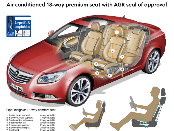 Τα καθίσματα θα προσφέρονται αποκλειστικά στις εκδόσεις με δερμάτινο σαλόνι και τιμή (στη Γερμανία) από 350 έως 390 ευρώ ανάλογα το μοντέλο στο οποίο θα τοποθετηθούν. Το σύστημα AGR περιλαμβάνει ένα ειδικό σύστημα αγωγών εξαερισμού το οποίο εξασφαλίζει ροή αέρα στην πλάτη και την έδρα του καθίσματος ώστε να απομακρύνεται ο ιδρώτας των επιβατών που είναι ιδιαίτερα ενοχλητικός σε χώρες με κλιματολογικές συνθήκες όπως αυτές της χώρας μας. Τα νέα αυτά καθίσματα θα είναι μέρος του βασικού εξοπλισμού των Insignia Sport και Astra Sport.