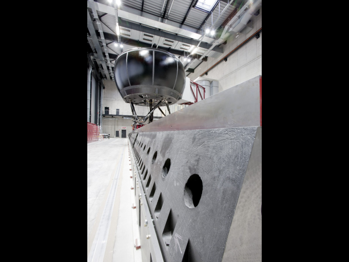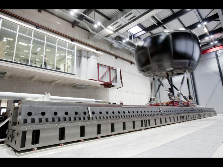 Η εργαστηριακή προσομοίωση πραγματικών συνθηκών, απαιτεί εξειδικευμένη μηχανολογία, πράγμα που υιοθετεί πλήρως ο νέος προσομοιωτής. Η γραμμική κίνηση, οφείλεται σε μια διάταξη που μοιάζει με έλκηθρο, το οποίο μετακινείται σε ένα λεπτό στρώμα αέρα χωρίς τριβές, συγκρατώντας με έξι συνολικά βραχίονες τη βάση της σφαιρικού τύπου εγκατάστασης, η πλατφόρμα της οποίας έχει μήκος 12 μέτρων. Κατά τη διάρκεια της «βίαιης» επιτάχυνσης της σφαίρας μέχρι τα 36 km/h, ο γραμμικός κινητήρας παρέχει δύναμη 220 kN, δύο φορές αυτής μιας σύγχρονης υπερταχείας (τρένου). Κατά τη διάρκεια του φρεναρίσματος ανακτάται ενέργεια, η οποία χρησιμεύει για την τροφοδοσία με ρεύμα της ίδιας της εγκατάστασης. Οι υπολογισμοί της κεντρικής μονάδας ελέγχου, έχουν συχνότητα 1000/sec, υπολογίζοντας την συμπεριφορά του οχήματος και τις αντιδράσεις μέσα στην καμπίνα των επιβατών.