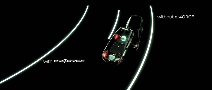 Με αστραπιαία χρόνο απόκρισης μόλις 1 χλιοστό του δευτερολέπτου, η μοναδική τεχνολογία e-4ORCE της Nissan είναι ταχύτερη και από το σύνηθες ανοιγοκλείσιμο του ματιού. Το σύστημα χρησιμοποιεί την μπαταρία για να τροφοδοτεί ένα σύστημα διπλού κινητήρα, ομοιόμορφα κατανεμημένο σε κάθε άξονα για ανεξάρτητο έλεγχο των τροχών.
