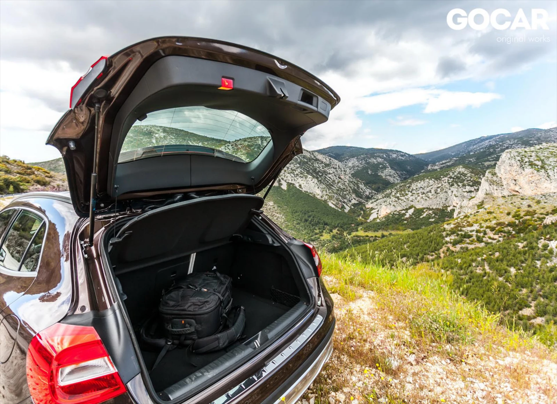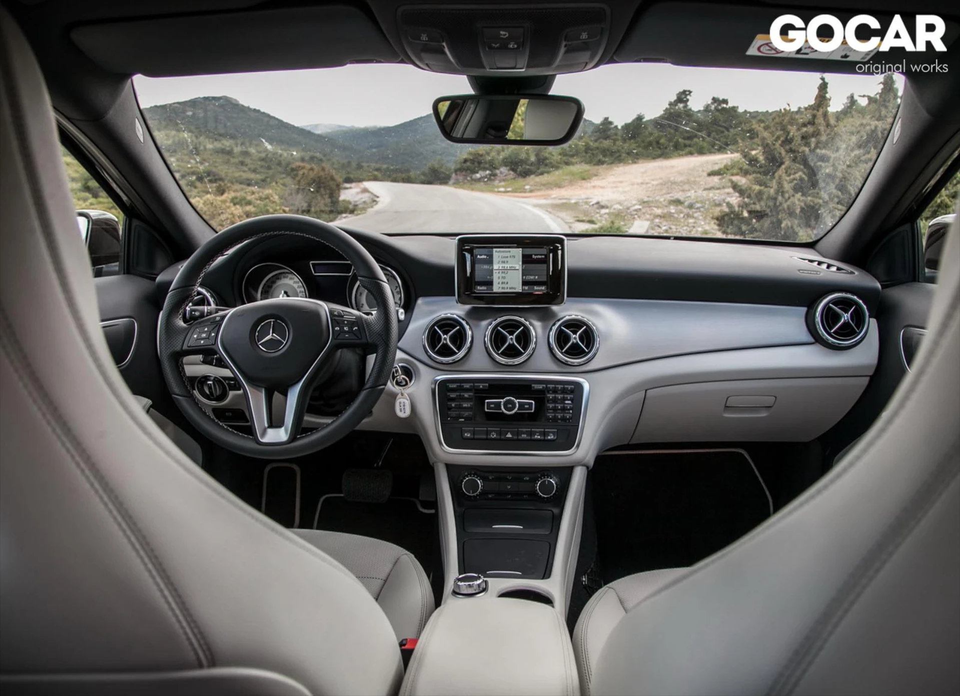 Από την άλλη, πέρα από στιλ, φινέτσα, φρου φρου και αρώματα, η ψηλοκάπουλη αισθητική, τα μαύρα διακριτικά πλαστικά προστατευτικά στα φρύδια των θόλων αλλά και στα μασπιέ, οι ποδιές σε εκτέλεση βουρτσισμένου αλουμινίου εμπρός και πίσω και η εμφάνιση υπερυψωμένου hatchback σε πείθει ότι δεν θα αρνηθεί την στιγμή που θα κληθεί να ανακατευτεί με τα χώματα. Η διακριτική στολή περιπέτειας δεν προσβάλει την γενικότερη αισθητική που είναι κομμένη και ραμμένη στα Mercedes πρότυπα. Πολυτέλεια και ποιότητα πάνω από όλα, στοιχεία που προκύπτουν και όταν ανοίξουν οι πόρτες της μικρομεσαίας καμπίνας. Χώροι ανάλογοι της premium κατηγορίας που απευθύνεται με τους τέσσερις επιβάτες να νιώθουν άνετα και μόνο όταν φιλοξενείται πέμπτος, η πίσω τριάδα να νιώθει τα συμπτώματα της μικρομεσαίας καμπίνας, ενώ σε αυτή την περίπτωση ο μεσαίος έχει να αντιμετωπίσει και το πληθωρικό τούνελ της μετάδοσης. Πίσω από τους επιβάτες τα 421 lt του χώρου αποσκευών εξασφαλίζουν τις μεταφορικές τους ανάγκες, ενώ στα πλαίσια της πρακτικότητας προσφέρονται προαιρετικά(πακέτο Load Compartment) άλλα 60, με την πλάτη να ρυθμίζεται 15 μοίρες πιο όρθια. Με την πλήρη αναδίπλωση φυσικά τα διαθέσιμα λίτρα πολλαπλασιάζονται(1.235) και ο επίπεδος χώρος φόρτωσης περιορίζεται μόνο από το στενό άνοιγμα της πίσω πόρτας. Πέρα από λύσεις, εργονομία και ευρυχωρία η GLA προσφέρει και αναμενόμενη τεχνολογία με την πρώτη επαφή να είναι εμφανής στον διαθέσιμο εξοπλισμό που ενδεικτικά περιλαμβάνει πλήρες πακέτο ασφάλειας(9 αερόσακοι), τελευταίας γενιάς Pre-Safe και φυσικά εφαρμογές ενημέρωσης και ψυχαγωγίας μέσω της οθόνης τύπου tablet που ξεχωρίζει στην κορυφή της κονσόλας. Τα στάδια εξοπλισμού συμπληρώνουν προαιρετικά το ήδη υψηλό επίπεδο, ενώ τα περιθώρια εξατομίκευσης είναι σχεδόν ατελείωτα τόσο σε επίπεδο αισθητικής όσο και σε ηλεκτρονικά βοηθήματα, ειδικά πακέτα, στοιχεία άνεσης, πολυτέλειας και αξεσουάρ.