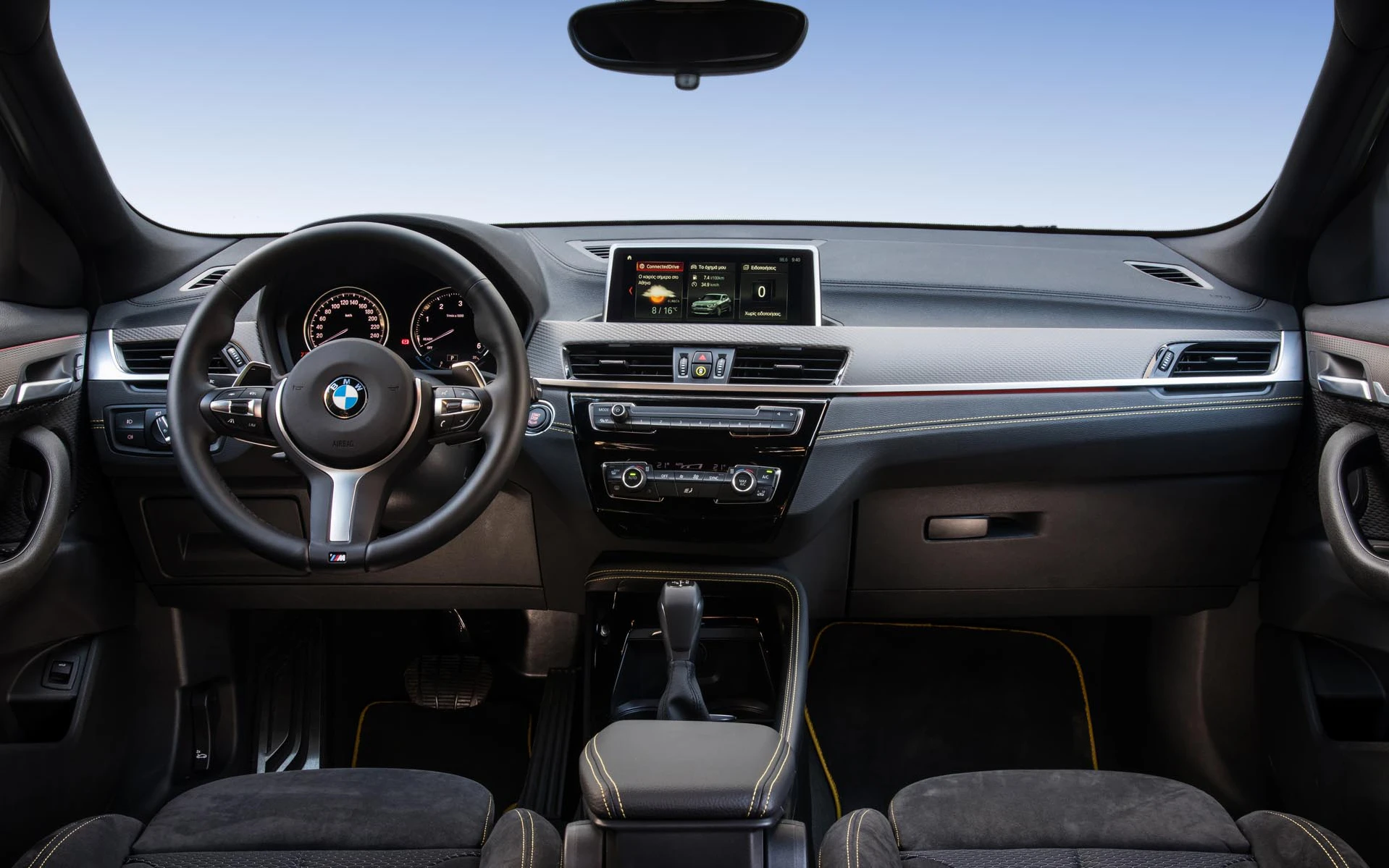 Η μεγαλύτερη «ένεση» ηθικού ήρθε όμως όταν πέρασα στο εσωτερικό της. Γνώριμο ως ένα βαθμό, δεν θα εντυπωσιάσει με τους νεοτερισμούς του, αλλά θα το καταφέρει πολύ καλά μάλιστα, με την ποιότητά του. Και αυτό αφορά τη συνολική εικόνα και αίσθηση που βγάζει. Θαρρείς και σχεδιάστηκε αποκλειστικά για τον οδηγό, με την κονσόλα στο σύνολό της από πάνω μέχρι χαμηλά να είναι στραμμένη προς αυτόν. Οι ραφές στο ταμπλό ενισχύουν ακόμα περισσότερο την ποιοτική εικόνα, συμβάλλοντας επίσης στην ενίσχυση της σπορ εικόνας. Για πρώτη φορά η γερμανική φίρμα προσφέρει μια νέα δερμάτινη επένδυση σε αυτή τη μικρή X2, δείχνοντας εν ολίγοις τη σημασία που δίνει σε αυτό το μοντέλο. Το πάνελ του πίνακα οργάνων είναι μαύρο, δένοντας αρμονικά με τις λεπτομέρειες της καμπίνας που στο σύνολό της φιλοδοξεί να δώσει τη σπορ αίσθηση που αναζητάς από ένα μοντέλο της BMW. Και το πετυχαίνει πολύ καλά. Από την άλλη, η μεγάλη οθόνη αφής 8,8 ιντσών, του συστήματος προσφέρει μεταξύ άλλων και δυνατότητες σύνδεσης με πρωτόκολλα Android Auto και Aplle CarPlay, ενισχύει το τεχνολογικό υπόβαθρο του μοντέλου. Όλα αυτά εκτός από τον οδηγό θα απολαύσουν και τέσσερις ακόμα επιβάτες, με αξιόλογες ανέσεις και μοναδικό μελανό σημείο την επαφή των ποδιών του μεσαίου πίσω με το κεντρικό τούνελ που εισβάλει στην καμπίνα.