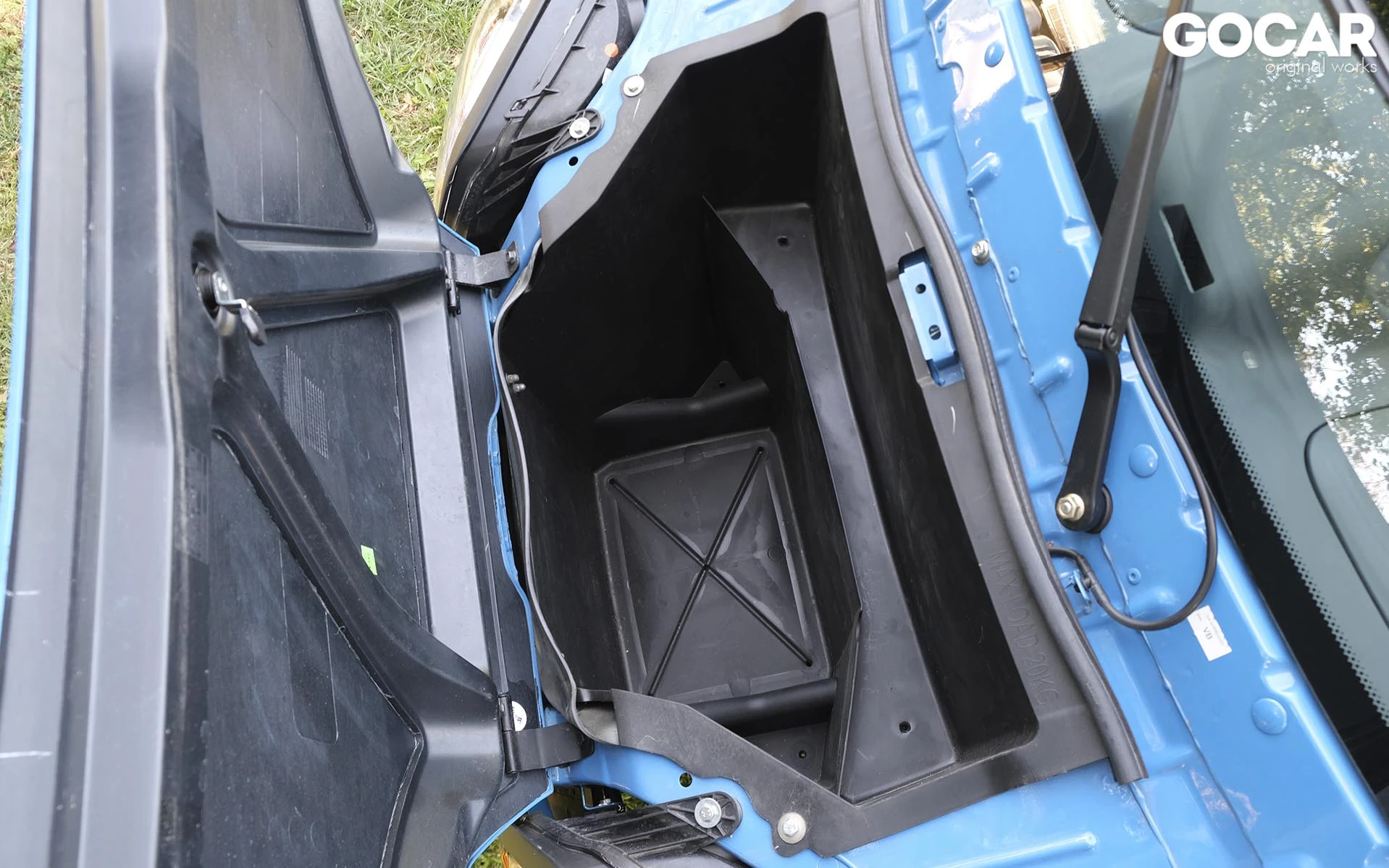 Στο κέντρο του ταμπλό ένας ευανάγνωστος πίνακας οργάνων προσφέρει το αναλογικό ταχύμετρο και συμπληρώνει την πληροφόρηση με ενδεικτικές λυχνίες και digital οθόνη για καύσιμα, trip computer και σχέσεις στο κιβώτιο ταχυτήτων. Αν θέλει κανείς συνδεσιμότητα και πλοήγηση, θα την έχει από το προσωπικό του smartphone, με το Qute να …κερνάει πρίζα φόρτισης και θύρα USB. Δεν θα σε αφήσει όμως χωρίς την στοιχειώδη ηχητική ψυχαγωγία με το μικρό ραδιόφωνο να προσφέρει Aux, να αναπαράγει MP3 και τηλεχειριστήριο για ευκολία. Μην περιμένετε θαύματα βέβαια από το μικρό ηχείο, σε συνδυασμό με την παντελή απουσία ηχομόνωσης. Παρεμπιπτόντως, στο Qute της δοκιμής η αντιπροσωπεία είχε τοποθετήσει ηχομονωτικό στην περιοχή του κινητήρα με κομψή εφαρμογή και ευεργετικά αποτελέσματα, όμως ο θόρυβος δεν παύει να πρωταγωνιστεί. Και αν αναρωτιέστε που βρίσκεται αυτή η ψυχή που τον δημιουργεί, σε πρώτη φάση θα σας πούμε κάτω από τα πίσω καθίσματα και η πρόσβαση γίνεται με το γνωστό μοναδικό κλειδί, ξεκλειδώνοντας τον …προφυλακτήρα!