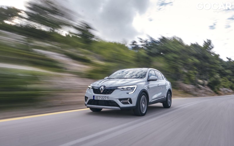 Η εικόνα του δεν αλλάζει στον αυτοκινητόδρομο, με το Arkana να προσφέρει ξεκούραστο και άνετο ταξίδι, εκμεταλλευόμενο όλα τα παραπάνω στοιχεία στο έπακρο. Στον επαρχιακό δρόμο, διαπιστώνεις πως πρόκειται για μία στιβαρή κατασκευή, άκαμπτη με πολύ υψηλά περιθώρια πρόσφυσης. Το σχετικά ελαφρύ τιμόνι προσφέρει καλή πληροφόρηση, ενώ τα φρένα αν και υστερούν ελαφρώς σε αίσθηση (λόγω του συστήματος ανάκτησης) έχουν αρκετή δύναμη για να σταματήσουν το αμάξωμα των 1.435 kg. Το αυξημένο βάρος δυσκολεύει το υβριδικό σύστημα σε πιο γρήγορους ρυθμούς, με κύριο χαρακτηριστικό του την ελαστικότητα στο μεγαλύτερο εύρος στροφών. Η ενίσχυση από τον ηλεκτροκινητήρα είναι εμφανής στις πολύ χαμηλές στροφές, στοιχείο που βοηθάει στην έξοδο των στροφών. Όσον αφορά το κιβώτιο, σε αντίθεση με την πόλη, στη σβέλτη οδήγηση δείχνει να μην βρίσκεται στο στοιχείο του, αφού αρκετές φορές κρατάει μία σχέση περισσότερο από όσο θέλεις.