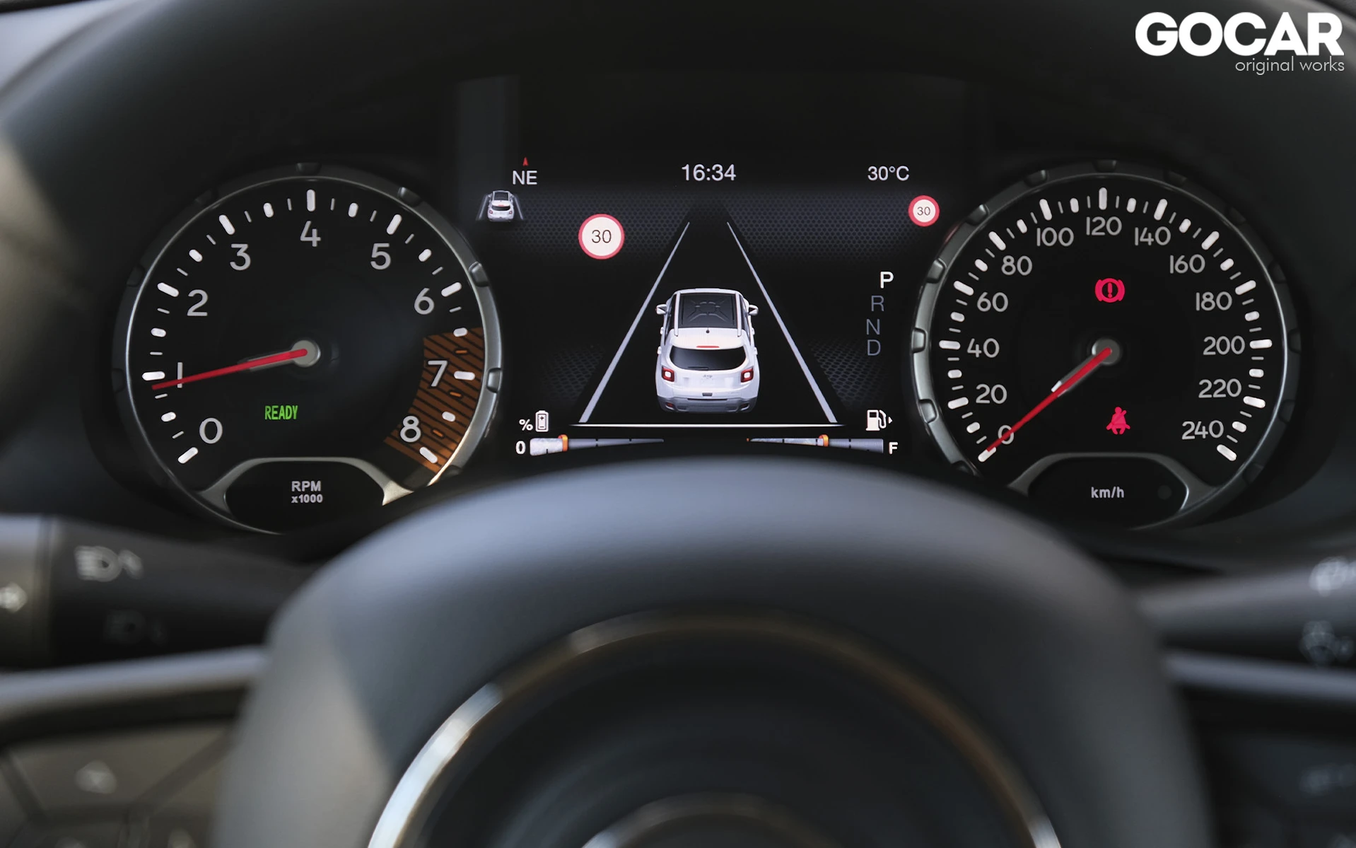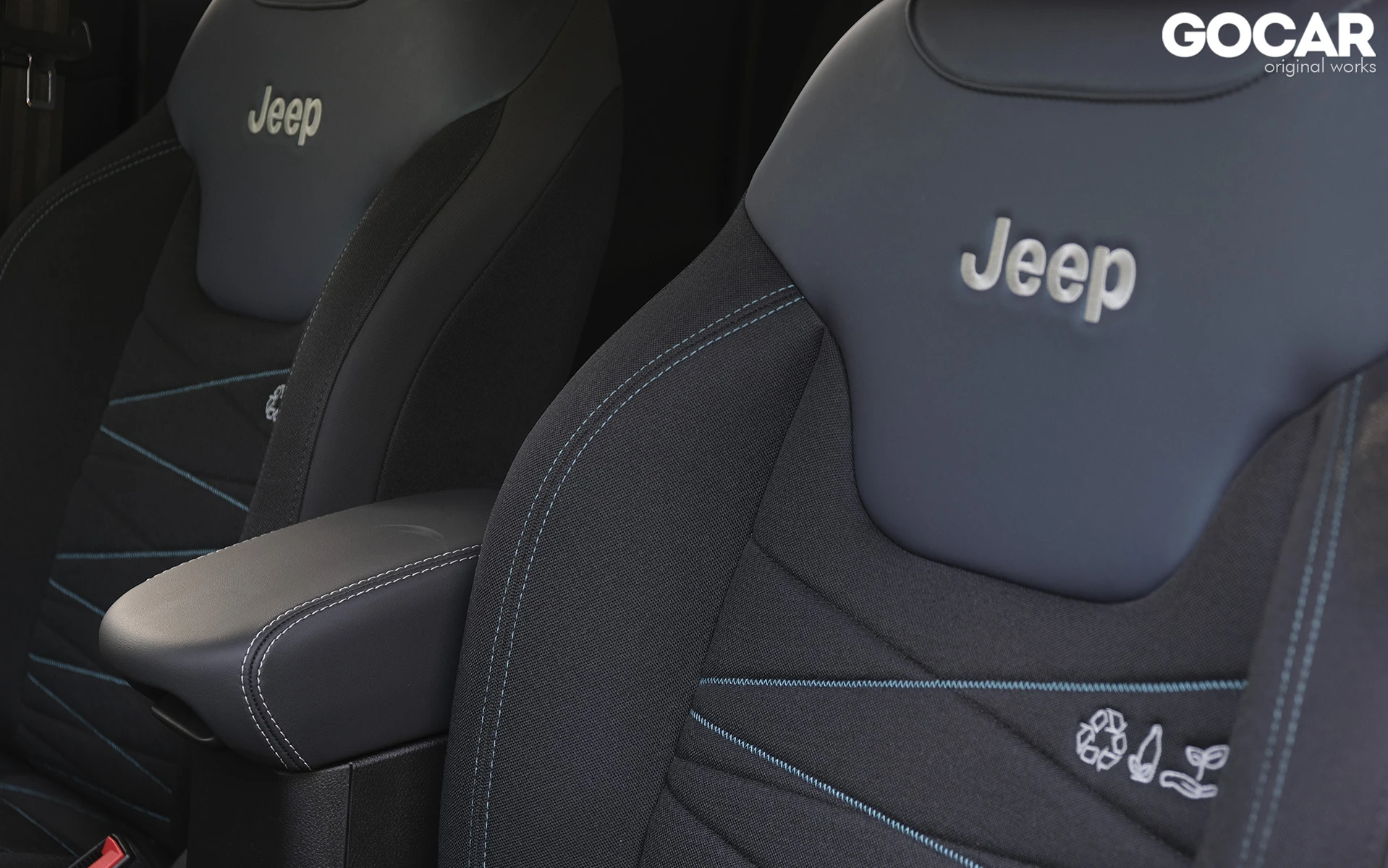 Το ίδιο πληθωρικό είναι και το εσωτερικό. Χωρίς να δείχνει την παραμικρή διάθεση απόκρυψης της ηλικίας του, αντιθέτως, προβάλλοντας ένα πιο ελεύθερο και αγριωπό ύφος, σε καλεί να βολευτείς στα καθίσματα με επενδύσεις από ανακυκλωμένα πλαστικά, να ρυθμίσεις το κλασικό τιμόνι Jeep και να εκκινήσεις το υβριδικό σύνολο. Μην εκπλαγείς αν δεν αντιληφθείς τον παραμικρό ήχο. Το Renegade e-Hybrid ξεκινά να κινείται αθόρυβα, χωρίς να εμπλέκεται ο κινητήρας βενζίνης.