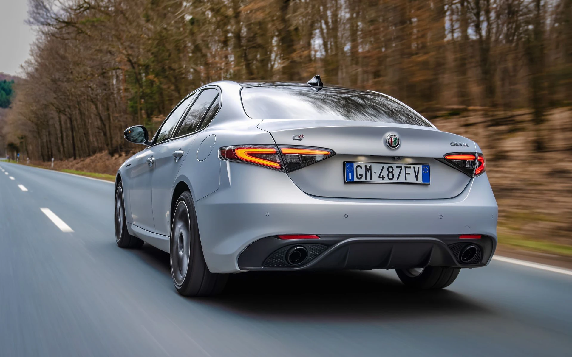 Χωρίς καμία ηλεκτρική υποβοήθηση, ο τετρακύλινδρος turbo βενζινοκινητήρας των 2.0 λίτρων είναι τοποθετημένος στον διαμήκη άξονα και αποδίδει 280 ίππους με 400 Nm ροπή. Το αυτόματο κιβώτιο 8 σχέσεων της ZF αναλαμβάνει να μοιράσει τη ροπή στους τροχούς, μέσα από το σύστημα τετρακίνησης Q4. Η πλατφόρμα Giorgio που στηρίζεται η Giulia, έχει πισωκίνητη αρχιτεκτονική, οπότε η προτεραιότητα δίνεται στους πίσω τροχούς. Αν αυτοί χάσουν την πρόσφυσή τους, τότε μεταφέρεται ροπή στους εμπρός, σε ποσοστό που μπορεί να φτάσει έως το 50 %. Αξίζει να σημειωθεί, ότι ο κεντρικός άξονας μετάδοσης είναι κατασκευασμένος από ανθρακονήματα σε όλες τις Giulia, τόσο πριν, όσο και μετά το facelift.