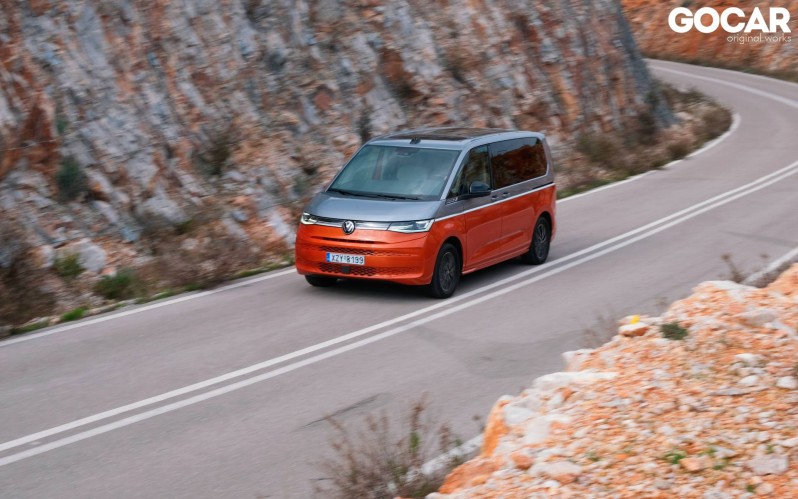 Κινηθήκαμε εντός πόλης, αλλά και στον αυτοκινητόδρομο για πολλά χιλιόμετρα, ενώ πραγματοποιήσαμε μόλις 2 επαναφορτίσεις της μπαταρίας. Φορτίζοντας σε πιο τακτική βάση, η μέση κατανάλωση εύκολα συγκρατείται κάτω από τα 4 lt / 100 km. Με τον 1.4 TSI στο παιχνίδι και την πλήρη ισχύ των 218 ίππων, η τελική ταχύτητα είναι στα 190 km/h και τα 0-100 km/h, ολοκληρώνονται σε 11,5 sec. Οι επιδόσεις όμως, είναι δευτερεύουσας σημασίας σε αυτοκίνητα όπως το Volkswagen Multivan. Το σημαντικότερο κομμάτι είναι ότι ακόμη και με επτά επιβάτες συν αποσκευές, το επιβατικό van επιταχύνει πρόθυμα, ανεβαίνει με ευκολία ακόμη και μεγάλες ανηφόρες και δεν «λαχανιάζει» σε ανωφέρειες του αυτοκινητόδρομου, ακόμη και με υψηλές ενδείξεις στο κοντέρ. Ο μοναδικός δισταγμός στο σύνολο προέρχεται από το DSG, το οποίο μερικές φορές καθυστερεί να κατεβάσει σχέση. Η λύση έρχεται πατώντας περισσότερο το δεξί πεντάλ, για να πραγματοποιηθεί τελικά το kick-down. Όταν πιεστεί, ο κινητήρας βενζίνης θα… ακουστεί αρκετά εντός της καμπίνας, όμως αυτό θα συμβεί μόνο σε συγκεκριμένες συνθήκες. Να αναφέρουμε επίσης ότι χάρη στα 330 Nm ροπής, ο ηλεκτροκινητήρας δεν προβληματίζεται όταν κινεί μόνος του το αυτοκίνητο, παρά το βάρος που μπορεί να φτάσει κοντά τους 3 τόνους με πλήρες φορτίο. Η τελική ταχύτητα στην αμιγώς ηλεκτρική λειτουργία, ορίζεται στα 110 km/h.