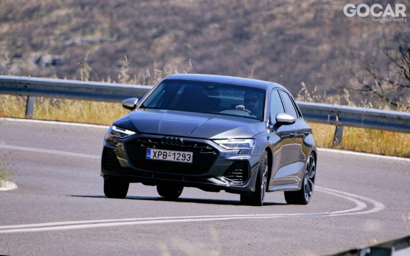 Στην πράξη, το Audi S3 σε κερδίζει αμέσως, όταν βρεθείς μαζί του σε μια ορεινή ή επαρχιακή διαδρομή. Προβλέψιμο και φιλικό όπως πάντα, αλλά και συμμετοχικό. Αρκεί να σημαδέψεις στο apex και να επιμείνεις στο γκάζι, για να βγεις από τη στροφή γλιτρώντας με τα τέσσερα ή και ανάποδο τιμόνι. Η διαδικασία γίνεται ακόμη πιο διασκεδαστική σε κομμάτια με λιγότερο καλή άσφαλτο. Η απώλεια πρόσφυσης που μέχρι πρότινος, θα μεταφραζόταν σε υποστροφή, στο νέο Audi S3 προκύπτει ως προοδευτικό γλίστριμα προς την έξοδο και «γυρισμένη» ουρά. Αν περάσεις στο γκάζι και το πιέσεις λίγο περισσότερο, το σύνολο έρχεται σε μια πολύ διασκεδαστική ισορροπία και σου επιτρέπει να ρυθμίσεις τη γωνία με το δεξί πεντάλ. Το πίσω μέρος ανοίγει, το τιμόνι περιστρέφεται στα χέρια σου βοηθώντας να το κρατήσεις εκεί που θες και η τετρακίνηση μεταβάλλει συνεχώς την κατανομή της ροπής, ανάλογα με αυτά που ζητάς.