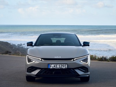Η αποκάλυψη του EV6 αποτέλεσε το έναυσμα για το λανσάρισμα της οικογένειας των ηλεκτρικών της Kia. Ακολουθήσαν τα EV9, EV3 και προσφάτως τα EV4 και EV5. Οι νεότερες προσθήκες υιοθετούν μία νέα σχεδιαστική φιλοσοφία, και συγκεκριμένα στη μάσκα, η οποία -παραδοσιακά- έχει ονοματεπώνυμο. Έτσι, το εμπρός μέρος και του EV6 ανασχεδιάστηκε ριζικά ακολουθώντας την τάση “Modern Contrast”. Η διαφορά είναι άμεσα ευδιάκριτη, με τα νέα φωτιστικά σώματα να πλαισιώνονται από έντονα και μεγάλα σε διαστάσεις φώτα ημέρας. Με αυτό τον τρόπο, έχει αποκτήσει μία ακόμα πιο φουτουριστική, αλλά και σπορ αισθητική. Νέος είναι και εμπρός προφυλακτήρας, με τις ακμές στο κάτω μέρος να αναδεικνύουν περαιτέρω το δυναμισμό του.