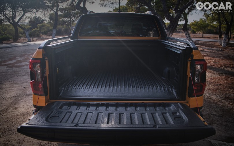 Πίσω από την διπλή καμπίνα επιβατών, το Ford Ranger Wlidtrak έχει έναν ανοικτό χώρο φόρτωσης με διαστάσεις 1,56 m (μήκος) επί 1,58 m (πλάτος). Προαιρετικά μπορεί να καλυφθεί με ηλεκτρικά συρόμενο μεταλλικό ρολό για να κλείνει τον χώρο όταν αυτός δεν χρησιμοποιείται ή τέλος πάντων, όταν το φορτίο δεν ξεπερνά τα 530 mm ύψους των τοιχωμάτων. Η Ford προσφέρει και το Pro Power Onboard, δύο πρίζες 230V με δυνατότητα εξαγωγής έως 2,3 kW (10 Amp) ή προαιρετικά, 6,9 kW (16 Amp) που πραγματικά λύνει τα χέρια των επαγγελματιών, αφού μπορεί να τροφοδοτεί εργαλεία, εξοπλισμό και οτιδήποτε λειτουργεί με ρεύμα, χωρίς την ανάγκη μεταφοράς γεννήτριας. Στα πλάγια του πίσω προφυλακτήρα συναντάμε σκαλοπάτια για εύκολη πρόσβαση στην καρότσα και βέβαια, επένδυση υψηλής αντοχής για να είναι ανθεκτικές οι επιφάνειες φόρτωσης.