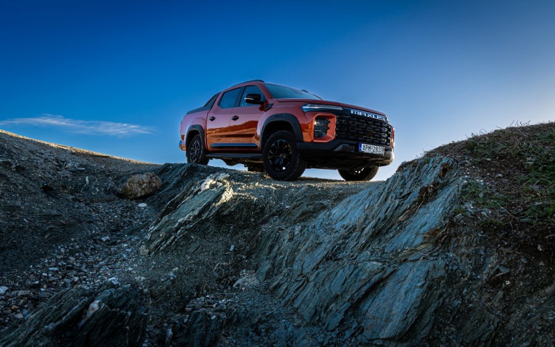 Εκεί που πραγματικά βρίσκεται στο στοιχείο του, είναι όταν η άσφαλτος τελειώσει. Με πολύδισκο συμλέκτη σε ρόλο κεντρικού διαφορικού που μπορεί να κλειδώσει την κατανομή στο 50:50 εμπρός-πίσω, μπλοκέ πίσω διαφορικό, κιβώτιο υποπολλαπλασιασμού, απόσταση από το έδαφος 217 mm στον εμπρός άξονα και 230 mm στον πίσω, όπως και γωνίες προσέγγισης και διαφυγής στις 29 και 26 μοίρες αντίστοιχα, δύσκολα θα βρεθεί εμπόδιο που δεν μπορεί να ξεπεράσει. Και αν αυτό βρεθεί, τότε κατά πάσα πιθανότητα θα οφείλεται στα ανεπαρκή για εκτός δρόμου χρήση ασφάλτινα ελαστικά που συνοδεύουν το αυτοκίνητο. Ακολουθώντας μια γνώριμη εκτός δρόμου διαδρομή με αρκετό βαθμό δυσκολίας λόγω της κακοκαιρίας που επικρατούσε κατά την περίοδο της δοκιμής, εντυπωσιαστήκαμε με τις δυνατότητες του T60 Max στο χώμα. Μεγάλα νεροφαγώματα με πέτρες, απότομες ανηφόρες και σαθρό έδαφος, δεν έπληξαν καθόλου το κινέζικο pick-up. Η τετρακίνηση έχει έξυπνη λειτουργία και το μπλοκέ πίσω κατανέμει πολύ γρήγορα τη ροπή στον τροχό που πατάει, αν ένας από τους δύο σηκωθεί από το έδαφος. Ακόμη και με τα ασφάλτινα ελαστικά πέρασε από απότομη ανηφόρα με λάσπη και νεροφάγωμα, έστω και με τη δεύτερη προσπάθεια…