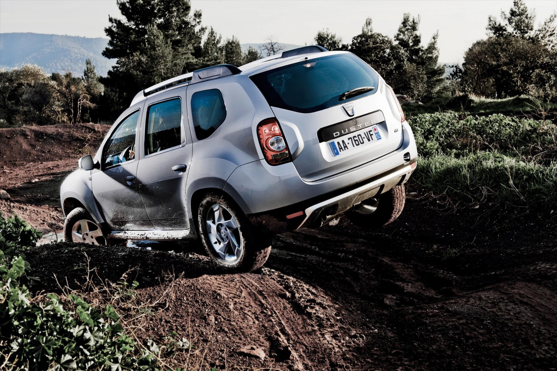 Εξερευνώντας την off-road διάσταση του Duster, σύντομα περιορίζεσαι στα πλαίσια κάθε μοντέρνου SUV. Ο κεντρικός περιστροφικός διακόπτης της τετρακίνησης διαθέτει τρεις θέσεις λειτουργίας: 2WD, Auto και Lock (κλείδωμα για κατανομή 50:50- μέχρι και τα 60 km/h). Σε πιο απαιτητικές εκτός δρόμου καταστάσεις, το Duster δεν θα πει αμέσως όχι. Το μπλοκάρισμα της τετρακίνησης, η κοντή 1η και η ενδοτικότητα της ανάρτησης θα σε βοηθήσουν. Πρώτο σημάδι ότι πλησιάζεις τα όρια είναι η μυρωδιά από το ζόρισμα του συμπλέκτη, ενώ κάπου εκεί γίνεται επίσης αντιληπτή η έλλειψη πίσω διαφορικού περιορισμένης ολίσθησης και το διαγώνιο σπινάρισμα των τροχών.